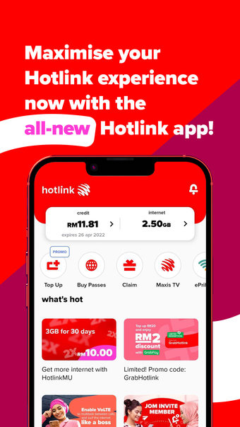 Hotlink uygulaması, Hotlink Prepaid ve Postpaid kullanıcıları için tasarlanmış kapsamlı bir hizmet sunuyor. Kullanıcılar, bakiye ve internet kullanımını takip edebilir, ayrıca 300'den fazla markadan ücretsiz fırsatlarla Hotlink Rewards programından yararlanabilirler. Uygulama, eğlence içeriklerine erişim sağlayan Maxis TV, özel promosyonlar ve e-fatura gibi özellikler sunarak kullanıcı deneyimini zenginleştiriyor. Kullanıcılar, kredi/banka kartı, online bankacılık ve e-cüzdanlar ile kolayca ödeme yapabilirler. Ayrıca, en yakın Hotlink mağazasını bulmak için mağaza bulucu özelliği de mevcuttur.